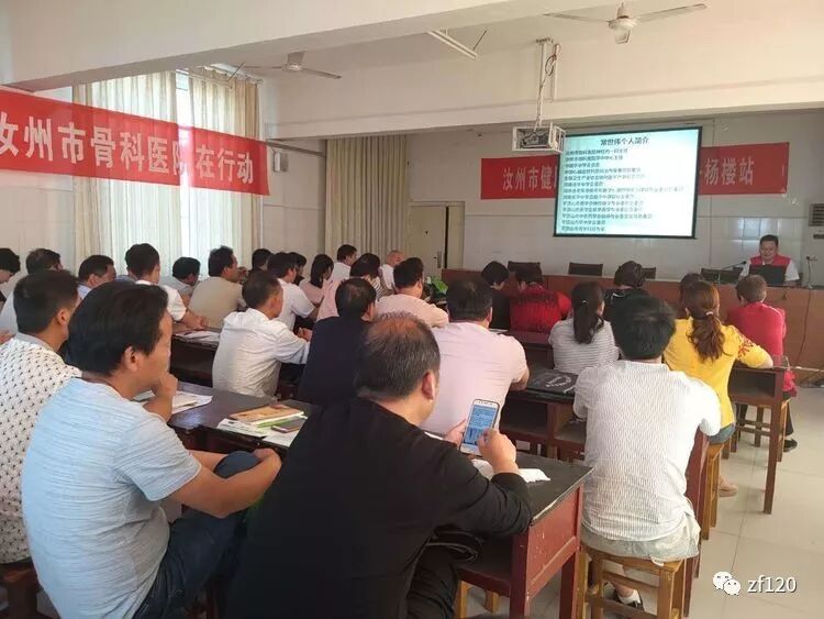 2019年5月23日下午,汝州市骨科医院脑卒中中心的中风120战士走进了杨楼镇,为全镇基层医师进行了“三步识中风快打120”科普及卒中防治培训活动。