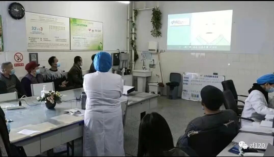 年轻的医生们利用休息时间,对医院的120医护人员、急诊医护人员、急诊预检分诊人员、门诊办公室全体人员,保安、保洁、电梯值守人员等后勤人员进行中风120知识全员培训。并且在住院部大厅、门诊大厅等人流量大的地方循环播放中风120视频,让更多患者及家属了解中风,并能早期识别。