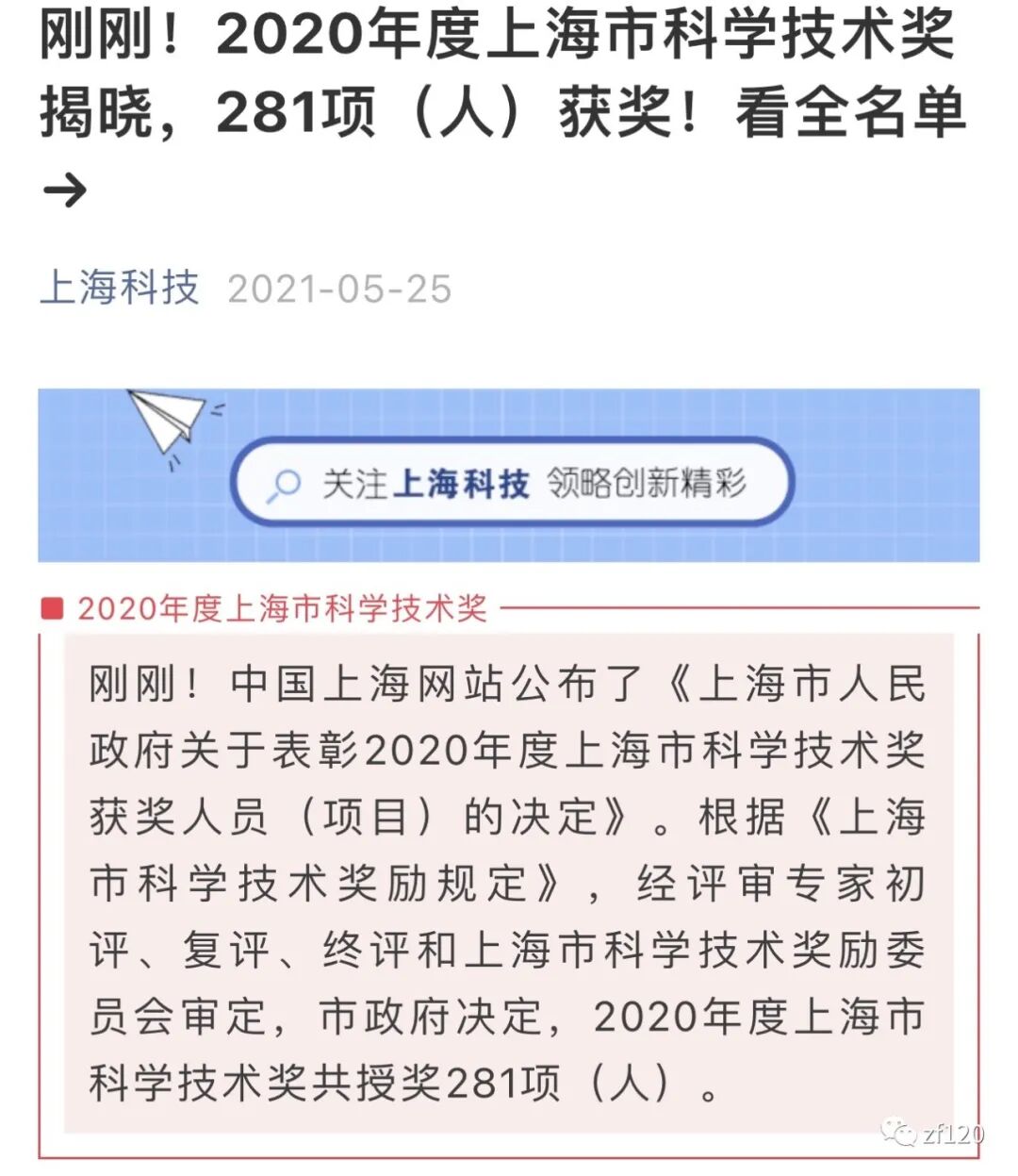 上海市科学技术奖由上海市人民政府设立,旨在表彰为上海科技创新事业和经济社会发展作出突出贡献的科技工作者和重大科技成果,是上海含金量最高的科技类奖项之一,其中科学技术普及奖授予取得重大科普成果,为普及科学技术知识、倡导科学方法、传播科学思想、弘扬科学精神做出重要贡献的个人、组织。